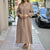 New cotton and linen solid color long-sleeved V-neck button long jumpsuit group m301971
