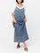 Simple thin loose long solid color washing suspender casual denim dress m301885