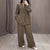 New fashionable and comfortable cotton and linen long-sleeved semi-open placket casual pleated wide-leg pants set m301930