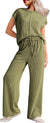 Fashion casual women's short drawstring solid color commuter trousers set m301377