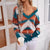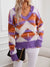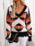 Aztec cut knitted sweater geometric pattern jacquard pullover V collar top long sleeve ethnic style m301953
