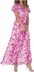 Beach pendulum long dress chiffon floral short-sleeved ruffle V-neck fashion waist dress m301342
